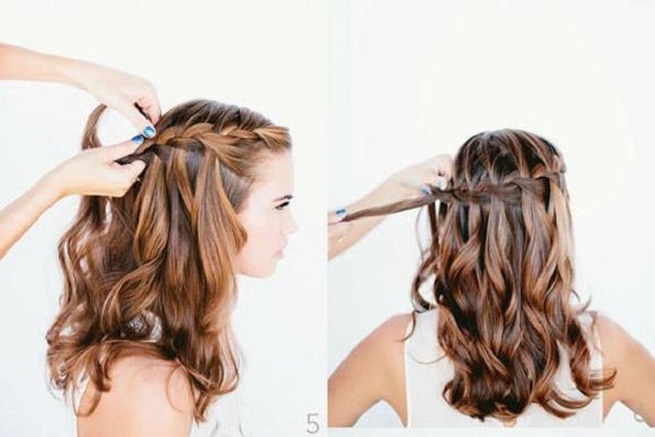 - B1: Uốn xoăn tóc, tết kiểu thác nước sẽ đẹp hơn với mái tóc xoăn nhẹ.